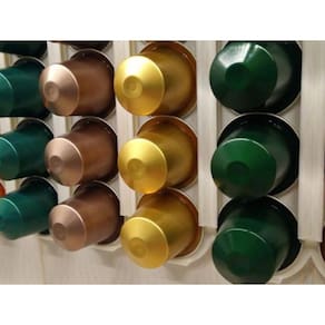 Suporte Porta Capsulas Nespresso Parede 30 Cápsulas. São 5 torres que comportam 6 cápsulas cada, suportando até 30 cápsulas.