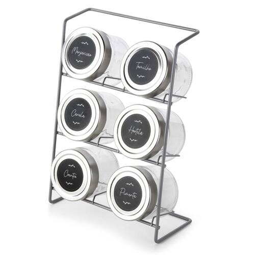 Porta-chás / Condimentos de Bancada em Aço com 6 potes de Vidro - Forma Utilidades