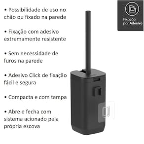 Suporte Porta Escova Sanitária de Piso Parede Aura Preto Limpeza Banheiro