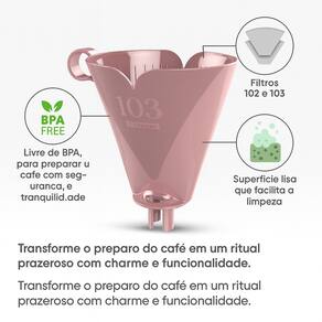 Suporte plástico com design clássico para filtro de café tamanho universal 103. Encaixe perfeito em bule, térmicas e na decoração da sua cozinha. • Tamanho 103. • Todos os produtos Sanremo são atóxicos: livres de BPA. Marca: Não Informado