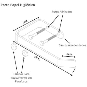 Porta Papel Higiênico: Altura 1.6cm x Profundidade 7cm x Largura 14cm