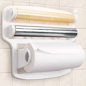 Suporte porta papel toalha aluminio plastico 4 em 1 de parede branco Organize sua cozinha com o novo porta rolos dr util