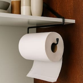 Mantenha sua cozinha mais organizada com o Suporte Porta Papel Toalha de Pendurar Preto. Ideal para quem busca funcionalidade sem precisar furar móveis, ele é feito com hastes de arame BTC de 6 mm e acabamento em pintura eletrostática epóxi na cor preta. Seu design aramado proporciona leveza e resistência, sendo perfeito para acomodar papel toalha, papel alumínio, filme PVC e outros acessórios. Basta encaixar o suporte em portas de armário, prateleiras ou bancadas. Uma solução prática e moderna para otimizar o espaço da sua cozinha.