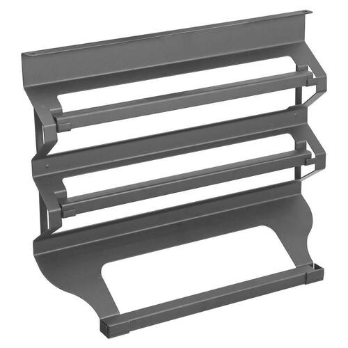 Suporte Porta Rolos Triplo de Encaixe Papel Toalha Alumínio e Filme PVC Aço Preto Piva Cozinha.