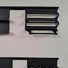 Garantia: 6 meses / Peso: 500g / Cor predominante: preto / Referência: 1011022211; Dimensões: 35cm (L) x 30cm (A) x 12cm (P); Dimensões necessárias no módulo de instalação: 37cm (L) x 30cm (A) x 20cm (P); Conteúdo: 1 porta rolos triplo; Material: aço carbono pintado; Obs.: barra de encaixe vendida separadamente.