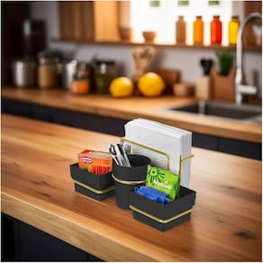 O conjunto para chá e café é prático e funcional, ideal para levar a mesa ou deixar na bancada do café. Os recipientes plásticos são ideais para armazenar saquinhos de chá, sachês de açúcar e adoçante e os mexedores.