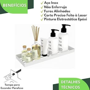 Porta Shampoo: Altura 1.6cm x Profundidade 8cm x Largura 24cm