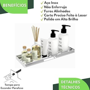 Porta Shampoo: Altura 1.6cm x Profundidade 8cm x Largura 24cm