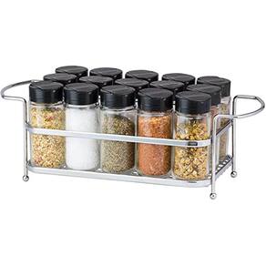 O suporte de condimentos conta com 15 vidros para que os temperos sejam armazenados individualmente. Por cada pote de vidro possuir corpo transparente se torna fácil a visualização do conteúdo. Pode ser armazenado dentro do armário e até mesmo sobre a bancada. Tenha praticidade e qualidade em sua cozinha com este porta temperos.