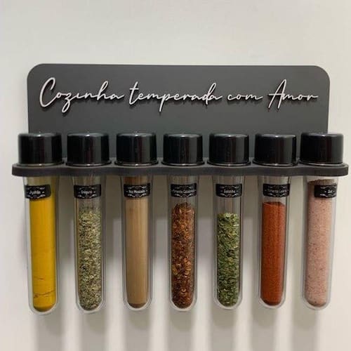 Porta Condimentos em MDF com 7 tubetes de 12,5cm.