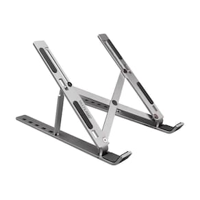 Especificações: - Compacto, leve e dobrável, fácil de transportar e guardar. - Fácil regulagem de altura. - Evita o superaquecimento. - Proporciona conforto e ergonomia. - Feito em Liga De Alumínio - Almofadas antiderrapantes de 4 apoios - Regulagem: Possui 6 Níveis de altura, para notebooks de 11 a 17 Polegadas. - Cor: Prata mais preto