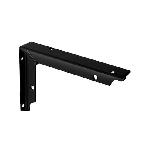 O Material: aço / ferro O Altura: 25cm O Comprimento: 50cm O Acabamento: pintura epóxi preto O Fixação: prateleiras de madeira