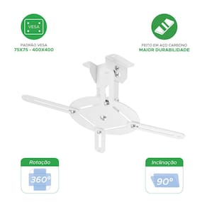 Suporte Projetor De Teto Parede Datashow 13Cm - Branco