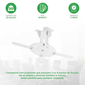 Suporte Projetor De Teto Parede Datashow 13Cm - Branco