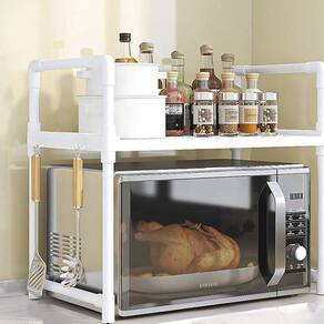 Suporte Rack Microondas Organizador Cozinha Prateleira Gancho Talher Louça Tempero Balcao Armario Compacto