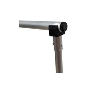 suporte: 3,00 metros de largura por 2,00 metros de altura confeccionada em alumínio, a travessa superior é segmentada em 01 metro com possibilidade de regulagem, conectores em nylon e sistema de rosca.