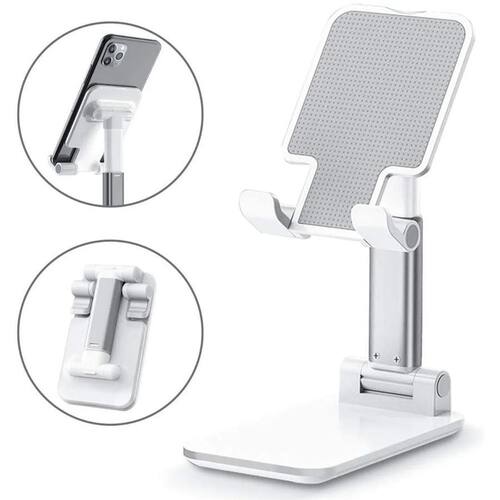 Suporte retrátil ajustável para smartphones e tablets, ideal para mesas de trabalho ou estudo, permite assistir vídeos e filmes com as mãos livres.Uso
