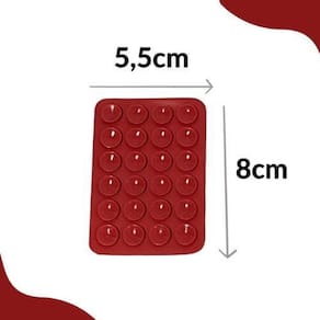 O suporte de silicone com ventosas possui um adesivo traseiro e vem com um total de 24 ventosas. Com um tamanho compacto de 8 por 5,5 cm, ele é fácil de transportar e pode ser utilizado em qualquer lugar.