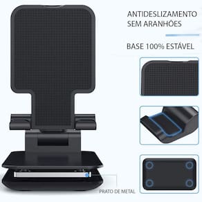 Com esse Suporte Retrátil você pode assistir as receitas enquanto cozinha ou assistir series de TV enquanto toma banho, o suporte móvel também é o seu melhor parceiro e uma das ferramentas que você precisa ter Ele é extremamente fácil de Guardar pois o suporte de telefone celular é dobrável, você pode dobrar o suporte após o uso, diminuir o volume e colocá-lo em seu bolso, bolsa ou mala para levar a qualquer lugar. Possui almofadas de silicone superior totalmente cobertas e base antiderrapante que protegem bem seus dispositivos de arranhões e deslizamentos, toque facilmente na tela sem se preocupar com o telefone escorregar ou cair. Especificações: - Não cobre as Legendas de filmes, series e jogos - Material ABS Liga de Alumínio - Quatro almofadas de silicone na parte de base que toca a mesa - Excelente desempenho detalhado: - Orifício inferior para carregar o telefone - Compatível com dispositivos de 4 a 10 polegadas. - Você pode usar o celular verticalmente e horizontalmente. - Facilmente dobre e desdobre o suporte - Ajustamento da Barra do Suporte 90° - Contração Elástica - Antiderrapante, não arranha o celular - Altura 11cm - Comprimento 6.5cm - Largura 2.5cm - Peso: 179g Marca: Não Informado
