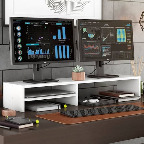 Que tal o Suporte Stand Base Para Tela Monitor Laptop Soft Elevado em MDF com 01 Prateleira?