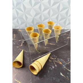 Suporte Temaki Pizza Cone Sorvete Casquinha Acrílico 6 Cones Cor: Cristal Os nossos expositores de acrílico são ideais para uma e balcão bem organizado e bonito permitindo aos clientes observar todas os produtos com maior clareza.