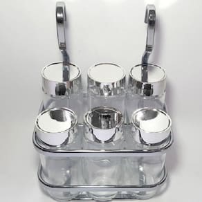 Valor referente a 06 potes de vidro 90 ml, 06 tampas e 01 suporte em aço cromado