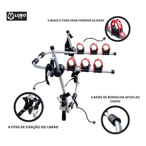 Capacidade: Transporta 3 bikes (2 adultas e 1 infantil)
