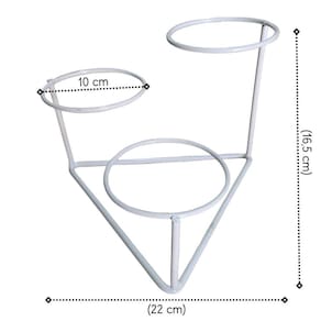 Suporte Triangulo de Mesa para 3 Vasos 11 (Branco) JC Descrição * Suporte Triangulo de mesa para 03 vasos de plantas é feito artesanalmente em Arame BTC e com acabamento em pintura eletrostática, o que traz resistência e durabilidade ao seu suporte. * Podem ser utilizados sobre estandes e mesas, trazendo delicadeza e beleza ao ambiente. Características * Material: Arame BTC (Baixo teor de Carbono) * Pintura Eletróstática * Cor: Branco * Altura:16,5 cm * Largura: 22 cm * Peso: 0,310g * Carga Máxima: 5Kg * Diâmetro do encaixe do vaso: 10 cm * Vasos não inclusos Informações/Dicas/Usos * Modelo ideal para vaso 11 Cultiv.me trabalha desde 2013 para trazer os melhores produtos de jardinagem ao alcance de todos. Acreditamos que cuidar da natureza deve ser acessível para todos. Cultiv.me o verde que faltava.