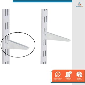 O Suporte para Trilho é ideal para fixar prateleiras com largura de até 220mm. Com encaixe duplo, pode ser utilizado com trilhos de rasgo duplo. Seu design com acabamento em pintura epóxi garante maior resistência e durabilidade.