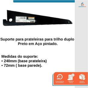 O Suporte para Trilho é ideal para fixar prateleiras com largura de até 220mm. Com encaixe duplo, pode ser utilizado com trilhos de rasgo duplo. Seu design com acabamento em pintura epóxi garante maior resistência e durabilidade.