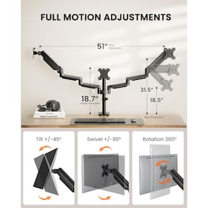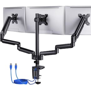 suporte de monitor triplo suporte de monitor triplo Suporte de 3 monitores Suporte de 3 monitores Suporte de monitor para 3 monitores Suporte de monitor de três monitores suporte de monitor triplo suporte de monitor triplo para mesa 3 suporte de monitor de 3 monitores suporte de 3 monitores suporte de 3 monitores para mesa montagem em monitor de 3 braços suporte de três monitores suporte de três monitores Suporte de três monitores Montagem em monitor triplo Suporte de mesa de 27 polegadas - Ampla compatibilidade: este suporte de monitor triplo pode suportar até três monitores de 27 polegadas com padrões de montagem VESA 75x75 ou 100x100mm. Com uma capacidade de peso de 17,6 libras por braço, esse suporte de monitor triplo foi projetado para suportar com segurança suas telas em qualquer altura ou posição ajustada. - Estabilidade e durabilidade superiores: o braço de monitor triplo é feito de aço premium com um braço de mola a gás testado para suportar 20.000 ciclos de elevação para um desempenho duradouro. Você pode confiar neste suporte de mesa com 3 monitores para manter seus monitores na posição desejada sem que o monitor caia ou oscile. - Ajuste flexível para um conforto ideal: o suporte de mesa de três monitores Full Motion oferece ajustes flexíveis nos braços esquerdo e direito, incluindo rotação de +/- 90°, inclinação de +/- 45° e rotação de 360°. Posicione facilmente a tela para minimizar o cansaço no pescoço e nos olhos, evitar o brilho das fontes de luz ou girar para usar o modo paisagem ou retrato. - Gerenciamento organizado de cabos: o suporte de monitor triplo foi projetado com gerenciamento de cabos integrado, permitindo que você direcione perfeitamente os fios ao longo dos braços e do poste para uma aparência limpa e simplificada. Uma vez conectadas a uma fonte de alimentação, duas portas USB 3.0 integradas oferecem uma maneira fácil de carregar dispositivos ou transferir dados diretamente em seu desktop. - Duas opções de instalação: escolha instalar usando montagem com braçadeira C em mesas de 0,39 ? -3,54 ? de espessura ou montagem com ilhó em mesas de 0,39 ? -3,15 ? de espessura. Com instruções detalhadas e hardware rotulado, você pode ter seus monitores montados em sua mesa em pouco tempo. Ao levantar suas telas acima da mesa, você pode liberar espaço valioso para seu laptop, teclado e mouse.