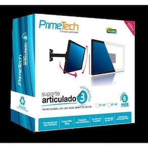 Suporte Tv Articulado 3 Movimentos Linha Prática - Primetech Suporte articulado de 3 movimentos 10 a 56 - PRIMETECH Benefícios do produto: O Suporte Articulado para TV de 10- 56 - 3 Movimentos, é composto por aço carbono, aplicável com qualquer modelo de TV, com pintura anti-corrosiva, possui capacidade de carga máxima de 45 KG, já testado com o dobro de carga. Rotação horizontal de 180o e inclinação de 15o, é fácil de transportar,além de já vir pré montado. Especificações Técnicas: Tipo de TV: LCD, Plasma, Led, Oled, Smart TV, 4K, 3D Aplicação: Parede Polegadas: de 10 a 56 N de Movimentos: 3 Movimentação: Articulado e Inclinável Articulação: Horizontal - 180 Inclinação: 15 Material: Aço Carbono Carga Máxima: 45 Kg Pintura: Anti Corrosiva (Epóxi) Cor: Preto Distância mínima da parede: 8,0 cm Distância máxima da parede: 28,0 cm Padrão de fixação: VESA Acompanha manual de instalação e kit de parafusos. 6 anos de garantia pelo fabricante.