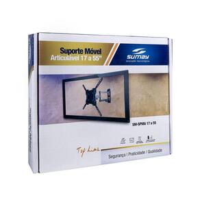 Suporte Articulado p/TV LCD/LED/3D/4K e Smart 23 até 55" SM-SPMA2 2355 Sumay Compatível com TVs planas de 23 a 55 polegadas. Personalize seu ambiente de acordo com suas necessidades, com tecnologia feita para durar e possui estrutura em aço laminado a frio.Permite ajustes laterais mesmo após a instalação.