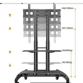 Seja bem vindo(a) à abc gemonIndicado para escolas, salas de reunião, eventos, videoconferência por ser modelo portátil com fácil locomoção e ajustes.CompatibilidadeTvs lcd / led / plasma / 3d / oled / qled de 32 a 70Tvs devem ter peso até 45kg Compatível com tvs que tenham o padrão de fixação vesa 200x100, 200x200, 200x300, 300x200, 300x300, 400x200, 400x300, 400x400, 600x200 ou 600x400 mm (hxv), normalmente encontrado em televisores de 32 a 65.Atenção: pode atender tvs até 70 desde que tenham peso até 45kg e vesa compatível.Carrinho de tv móvel nb north bayou suporte de tv de alumínio com rodas para telas planas de 32 a 65 polegadas tv de rolamento suporte com câmera e prateleira av com altura ajustável os recursos com rodízios lisos traváveis São seguros para fácil manobrando, para que você possa mover sua tv para qualquer lugar. A escolha perfeita para sua casa, escritório, aeroporto escolar, shoppings, salas de conferências, feiras, hotéis e muito mais. As rodas giratórias fornecem mobilidade em pisos de madeira e carpete.FunçõesAjuste de altura da tv.Ajuste de altura da webcam.Ajuste de altura da bandeja para notebook.Passagem interna para fiação.Livre regulagem de altura da bandeja.Rodízios para movimentar o pedestal sobre superfícies planas.Capacidade de cargaCarga máxima do suporte para tv: até 45 kg.Carga máxima sobre a bandeja inferior: até 5 kg.Carga máxima sobre a bandeja superior: até 5 kg.Altura(medida do chão ao centro da base de monitor):Altura mínima: 1100 mm.Altura máxima: 1500 mm.Intervalos de regulagem de altura a cada 50 mm.AtençãoVerifique o padrão de furação vesa de sua tv antes de comprar o suporte.Material: aço carbono , acabamento: tratamento anti-corrosão e pintura epóxi eletrostática.Cor: preto , medidas da bandeja: 500x290mm (lxp). Os rodízios possuem trava para que o pedestal seja freado, evitando assim movimentações indesejadas.Observações Os parafusos fornecidos no kit de acessórios do produto estão de acordo com os padrões mais comuns dentre aqueles utilizados pelos principais fabricantes de tvs lcd / led / plasma / 3d / oled / qled do mercado. Podem haver exceções quanto à compatibilidade dos mesmos. Imagens meramente ilustrativas, produto sujeito a alterações sem aviso prévio. Itens da foto ambientada não acompanham o pedestal, são apenas ilustrativos ( tv / webcam / notebook ).Tamanho da tela de 32 a 70Peso suportado máximo 45kgLocal de instalação chãoO que vem na caixaPedestal para tvManual de instruções / certificado de garantiaParafusos para fixação da tv / monitorColisão de estética e resistência feito de liga de alumínio para obter excelente carga-Desempenho de rolamento, projetado para uma experiência excepcional, se encaixa na maioria das telas planas oled de led lcd de 32 -70com padrões vesa universais 200x200mm, 300x300mm, 400x200mm, 400x400mm, 600x400mm. Confiável e bonito: segure a tv até 80 libras (36,4 kg) construída com base robusta: largura máxima da base 27,4 (695 mm), profundidade máxima da base 21,8 (555 mm). O conceito de design de arco, além do modo de coluna única design, torná-lo mais bonito do que outro produto.Atendimento segunda-feira a sexta-feira, das 08h30 da manhã às 17h45 da tarde.Obrigado pela preferência.