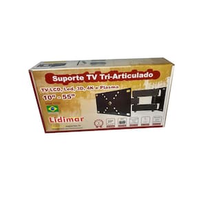 Anúncio: suporte TV Tri Articulado 10 à 55 Polegadas Cor: Preto Modelo: 1030 Marca: Lidimar Garantia de Fábrica: 05 anos 01 ano para Região Litorânea Dimensões da Embalagem A x L x P : 8 cm x 16 cm x 29 cm Peso da Embalagem: 2,15 kg Peso do Produto: 1,80 kg Itens por Caixa: 01 unidade Conteúdo da Embalagem: 01 base de parede, 03 braços, 01 articulação, 01 Base para TV, 04 Prolongadores e 01 kit de parafusos. Prazo de validade: Indeterminado