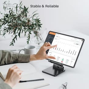 O material do suporte é de silicone e metal. Por ter o silicone, ele é antiderrapante e anti-scratch, evitando que o seu celular e a mesa sejam riscados. Foi desenvolvido baseado em técnicas para trazer um maior conforto para o corpo de quem passa diversas horas com o celular.