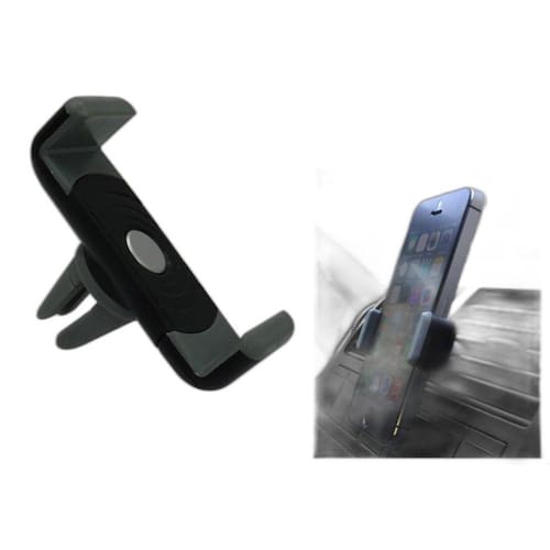 Suporte universal para celular, fixação nas grades do ar-condicionado. Gira 360º, com largura máxima de 75mm e minima de 55mm. Compatível com todos os celulares dentro dessas medidas.