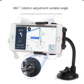 Suporte veicular com trava automática, articulação 360°, haste flexível em metal, ventosa de silicone com trava de fixação e trava automática para encaixe do aparelho.Vendido e entregue por Olist PR