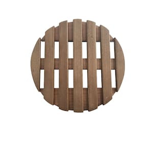 Suporte redondo para vasos ou ao seu gosto, fabricado em madeira de Eucalipto proveniente de reflorestamento com rodízios/rodinhas de polipropileno. O suporte pode ser utilizado em ambientes internos ou externos.