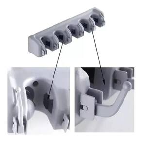 6 Ganchos Extras: Além dos 5 lugares para vassouras, o suporte possui 6 ganchos adicionais para uso geral, proporcionando ainda mais espaço para armazenamento.