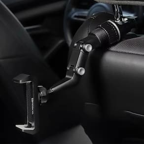 Suporte veicular com sistema de fixação inteligente, garras revestidas com materiais macios e antiderrapantes, cabeça articulada para rotação completa do dispositivo (vertical/horizontal), liberação rápida do celular.Vendido por TAMBU STORE e entregue por PontoFrio