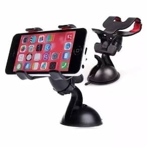 Suporte veicular para smartphone, celulares e gps o suporte universal é ideal para viagens e para se locomover pela cidade, pois cada vez mais precisamos usar o gps ou estar conectados ao smartphone para ver mapas ou fazer ligações em viva voz. Ele torna sua viajem muito mais segura e garante maior mobilidade dentro do veículo. Pratico, leve e resistente, o suporte de celulares se adapta a todo tipo de veículos, com movimento de 360 e fixação por ventosa este suporte é extremamente eficaz para celulares de até 6 polegadas. Especificações: