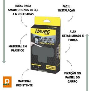 Suporte veicular para celular naveg nva 620-1 Informações do produto O suporte veicular para celular naveg: Tudo o que seu carro precisa, prático, este suporte é indicado para você colocar o seu smartphone preso no painel. De fácil manuseio. Seu aparelho pode ficar carregando e você ainda mexer confortavelmente na tela. Só não faça isso enquanto dirige. Ideal para verificar a rota de viagem no mapa. Ver quem está ligando, dar mais uma carga antes que a bateria acabe. Indicado para aparelhos com tela de 3.5 a 6 polegadas Características - alta estabilidade e força. - projetado para e smartphones de 3,5 a 6 polegadas. - suporte veicular para celular - para fixação no painel do carro Especificações técnicas: Produto: novo Marca: naveg Modelo: suporte veicular de celular Tipo: profissional Material: plástico Cor: cinza com preto : 3 meses Aplicações O suporte veicular de celular naveg é ideal para: Você poder dirigir com segurança, tendo a sua frente o seu aparelho bem fixo e visível, para acompanhar as rotas de gps, ou até mesmo deixá-lo carregando de uma forma segura enquanto efetua sua viagem. 2-Tem Sim. de 3 meses. 5-Vende em maior quantidade Sim. Temos outros anúncios 6-Ele é resistente Sim. Produto de ótima qualidade. 7-Serve para 11 Sim. Todos celulares de 3,5 a 6 polegadas 8-Ele vem em caixa Sim. Embalado individualmente em caixa. 9-A fixação é boa Sim. Ele fica bem fixo na saída de ar. 10-A é por conta de quem Nossa empresa garante os produtos e caso necessite damos total assistência. Marca: Não Informado Ean: 7800837062829