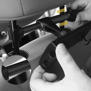 Para quem tem criança, o Suporte Veicular Tank Car para Tablet é um acessório indispensável. Com ele você pode prender o tablet na parte traseira do branco da frente e deixar a garotada assistindo desenho durante a viagem.A instalação do suporte no automóvel é fácil. Basta empurrar o braço retrátil do acessório e encaixá-lo na parte traseira do encosto de cabeça do banco. Os braços expansíveis são compatíveis com tablets de até 11 polegadas. O usuário ainda pode mover a tela em até 180, possibilitando a visualização de quem está no banco do lado.