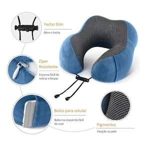 Faça a sua viagem mais confortável e relaxante Dimensões: Largura 29cm x Comprimento 24cm x Altura 14cm Materiais: 100% poliuretano enchimento e 100% poliéster capa