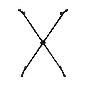 Fabricado em aço carbono de alta qualidade, o suporte Saty 2020-D oferece durabilidade excepcional. As hastes em formato X proporcionam distribuição uniforme do peso, enquanto as extremidades revestidas em borracha protegem tanto o instrumento quanto o piso.