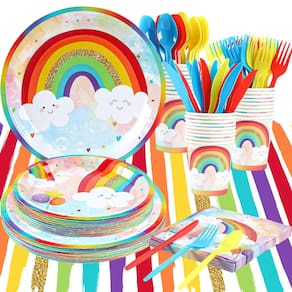 Apresentamos nosso conjunto de talheres de festa Rainbow Magic, onde imaginação e cores vibrantes se unem para criar uma celebração inesquecível para seus pequenos! Deixe seus sonhos voarem com este conjunto de talheres especialmente projetado, garantido para trazer uma explosão de emoção e alegria para sua festa. Feito com crianças em mente, nosso conjunto de talheres de festa Rainbow Magic é feito de materiais seguros para crianças, sem BPA, resistentes e duráveis. A natureza descartável do conjunto garante uma limpeza fácil, dando a você mais tempo para criar memórias queridas com seus pequenos. Deixe a imaginação do seu filho voar e seus sorrisos brilharem com nosso conjunto de talheres de festa Rainbow Magic Kids. Abrace a maravilha dos arco-íris, crie memórias inesquecíveis e dê aos seus pequenos uma festa que eles vão valorizar para sempre. Peça agora e deixe as cores do arco-íris trazer alegria e encantamento ao seu dia especial! - ? Conjunto de louça de decoração de aniversário arco-íris* - Este pacote de artigos de festa vibrante inclui; 24 peças de pratos de papel de 23 cm de espessura, 24 pratos de papel de 18 cm de espessura, 24 guardanapos, 24 peças de guardanapos, 24 peças de conjunto de talheres (garfos, facas, colheres) e toalha de mesa arco-íris para criar uma celebração temática de arco-íris vibrante e colorida. - ? Premium e de alta qualidade*- Nossos utensílios de mesa Rainbow Party são feitos de materiais de papel duráveis e confiáveis, garantindo que suas decorações permaneçam intactas durante toda a festa. Os pratos de papel arco-íris são resistentes e duráveis o suficiente para manter bem os alimentos, os guardanapos arco-íris são macios e inodoros. Você pode usar tudo com tranquilidade. - ? Configuração de mesa colorida e exclusiva*- A toalha de mesa arco-íris, pratos, copos, guardanapos e utensílios coloridos criam um visual visualmente atraente e coeso para sua mesa de festa. Decorações vibrantes para celebrações coloridas! - ? Uso versátil*- Perfeito para várias ocasiões, como festas de aniversário, chá de bebê, revelação de gênero, formaturas, festas coloridas na piscina, 2º, 1º aniversário ou qualquer outro evento em que você queira adicionar uma explosão de cor. - ? Fácil e conveniente*- Pratos, copos, guardanapos, talheres e toalha de mesa colorida descartáveis evitam que você se lave após a festa. Economize seu tempo com fácil configuração e sem limpeza após um dia colorido.