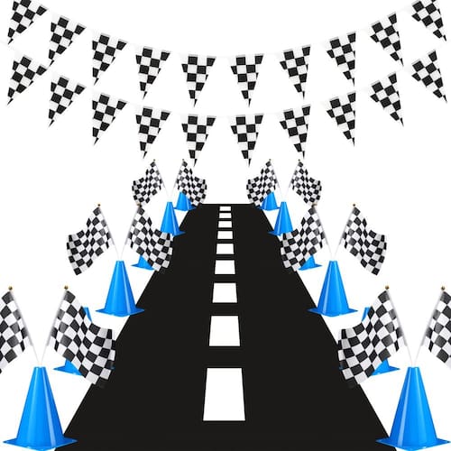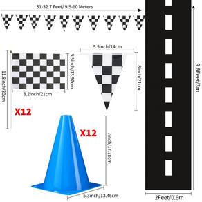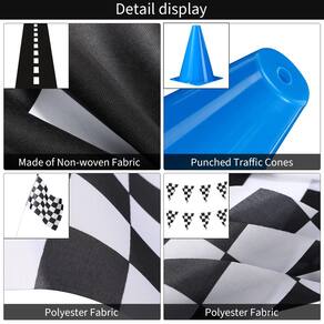 Características: Reutilizável e prático: Estes suprimentos de festa de corrida de carros podem ser aplicados muitas vezes. A pista de corrida pode ser dobrada perfeitamente para o próximo uso, fácil de transportar e armazenar. Os banners pendentes em preto e branco clássicos são decorações requintadas em várias ocasiões, como festas de aniversário, proporcionando a você uma boa experiência de uso. Acabamento fino: Estes tapetes de corrida de pista de corrida, cones de trânsito e bandeiras de corrida quadriculadas podem ser expostos ao vento e à chuva, adequados para uso interno e externo. Especificações: Itens: mini cones de trânsito Material: plástico Cor: como mostrado na imagem. Tamanho: aprox. 17 cm. Itens: bandeiras quadriculadas com palitos Material: tecido de poliéster com alça de plástico Cor principal: preto e branco Tamanho: cerca de 21 x 14 cm/8,27 x 5,51 polegadas Itens: bandeira quadriculada de corrida Material: tecido de poliéster Cor: preto e branco Tamanho: cerca de 9,5-10 metros/31,17-32,81 pés Itens: tapete de corrida para pista de corrida Material: tecido não tecido Cor: preto e branco Tamanho: cerca de 3 x 0,6 metros/9,8 x 2 pés Quantidade: 26 peças A embalagem inclui: 12 cones de tráfego de plástico. 12 bandeiras quadriculadas com palitos 1 bandeira quadriculada de corrida 1 tapete de corrida para pista de corrida. Observação: Medição manual, permita pequenos erros no tamanho. A cor pode existir uma pequena diferença devido a diferentes exibições de tela. Pode haver risco de enrolamento e cutucada, mantenha longe de pessoas pequenas. Os itens são adequados para pessoas acima de 12 anos de idade. - Itens enviados para você: há um total de 26 peças de suprimentos de festa de aniversário de carro de corrida no pacote para você, incluindo 12 peças de cones esportivos, 12 peças de bandeiras quadriculadas com varas, 1 peça de bandeira quadriculada de corrida e 1 peça de tapete de corrida de piso de pista; uma boa combinação pode trazer muita diversão para seus eventos esportivos e festivais - Informações de tamanho: estas decorações de festa de carro de corrida têm tamanhos moderados para você, cada cone de futebol mede aprox. 17 cm, as bandeiras de corrida têm cerca de 21 x 14 cm. O comprimento da bandeira quadriculada é de cerca de 9,5 a 10 metros. Além disso, o tapete de corrida preto é de cerca de 3 x 0,6 metros - Material útil: os mini cones de tráfego são feitos de plástico, as bandeiras de festa são feitas de tecido de poliéster com alça de plástico e o banner da pista de corrida é feito principalmente de tecido de poliéster, o corredor de piso da pista é feito de tecido não tecido; esses materiais confiáveis com cores brilhantes são muito adequados para festas temáticas de corrida - Uso extensivo: estas bandeiras quadriculadas de corrida e suprimentos de festa de corrida estão cheios de elementos esportivos, que podem ser aplicados em várias ocasiões, como festas de corrida, festas de aniversário, eventos esportivos, festas temáticas de corrida e muito mais - Bom complemento para uma festa de corrida: estes cones de trânsito, tapetes de pista de corrida e bandeiras quadriculadas podem servir decorações delicadas para suas festas; use o corredor de chão preto para decoração simples de mesa; e o banner da bandeira de corrida pode funcionar como uma linha de chegada para sua pequena corrida de velocidade, ou pendurá-los em árvores, mesas, paredes, cercas, varandas, portas, vigas e assim por diante para decorações