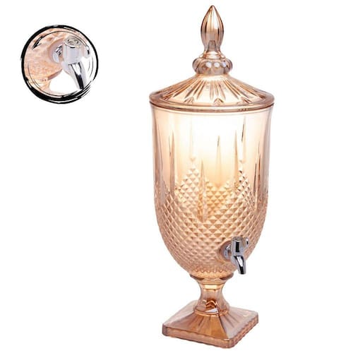 Sobre o Produto: Suqueira de Cristal âmbar torneira de plástico prata com capacidade para 5 Litros.