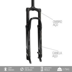 Com medidas de ahead set over 28.6mm e comprimento do canote de 260mm, esse garfo é compatível com bicicletas aro 29. Ele possui amortecimento por mola, o que garante um maior conforto durante as pedaladas.
